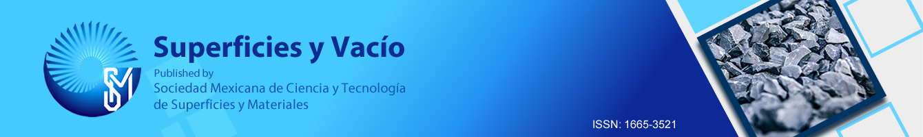 Superficies y Vacío (p-ISSN: 1665-3521) is an international journal that publishes researh articles in the field of Surfaces, Materials and Vacuum, in English and in Spanish, having a peer review process. It is indexed at SciELO, Latindex and SJR.